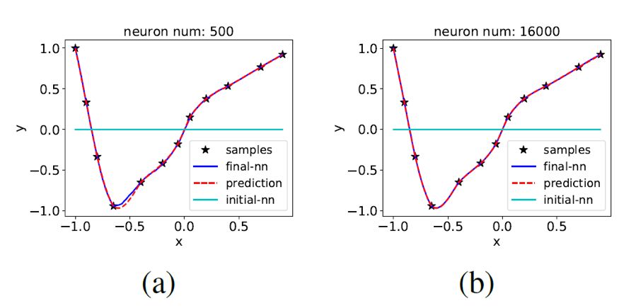 上述数值实验证明,当神经元数目很大时,LFP 模型能够非常有效地刻画单隐藏层的神经网络的学习结果。
