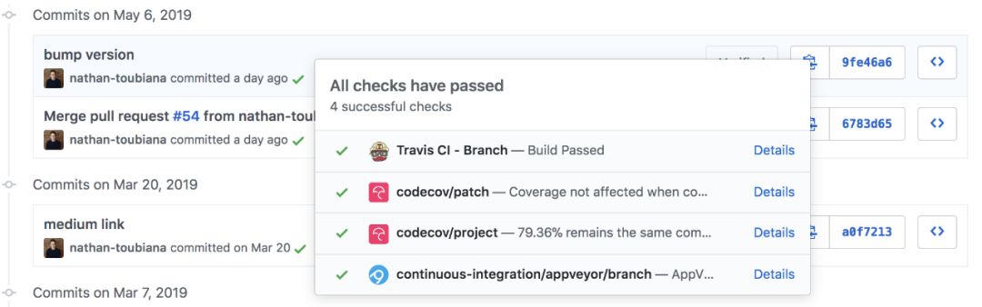 此时,你的项目离发布就绪不远了。但是,在每次提交之后,必须更新文档、运行测试以及检查样式和覆盖率似乎有点难以应付。幸运的是,持续集成(CI)可以帮助你完成。你可以在每次提交之后使用 GitHub 的 webhook 来自动执行所有的这些操作。以下是我们在 SciTime 中使用的一套 CI 工具: