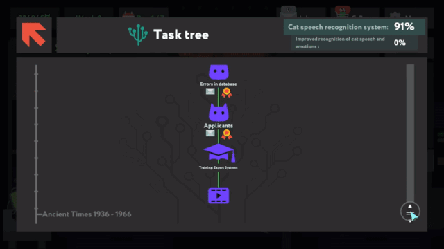 游戏中,你需要一步步掌握机器学习的知识,从专家系统开始,一直到循环神经网络,朝着喵语识别的终极目标前进。
