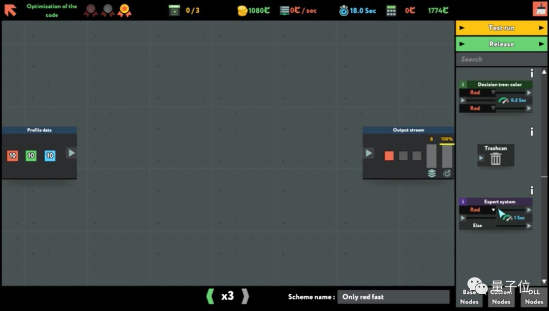 有些小伙伴,想用专家系统 (右边的紫色模块) 直接筛出红色。奈何游戏有时间限制,专家系统无法在25秒内筛选完毕,被淘汰了。