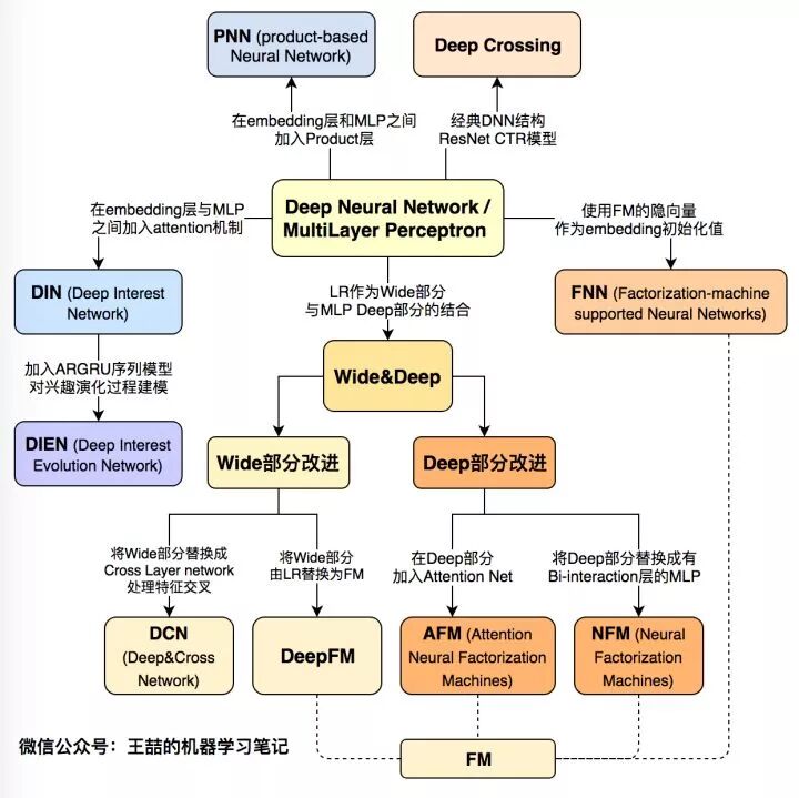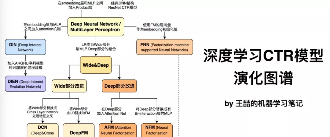 下面首先列出这张深度学习CTR模型的演化图谱,再对其进行逐一介绍: