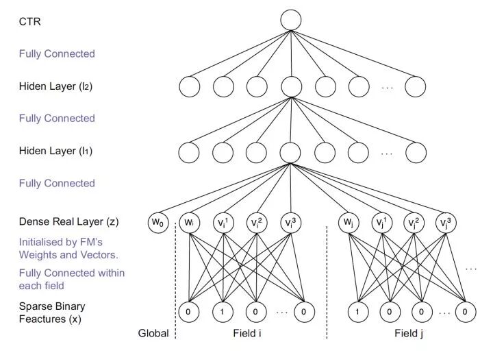 二、FNN(2016年)——用FM的隐向量完成Embedding初始化