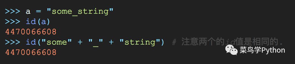 这些行为是由于 Cpython 在编译优化时, 某些情况下会尝试使用已经存在的不可变对象而不是每次都创建一个新对象. (这种行为被称作字符串的驻留[string interning])