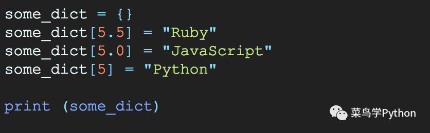 运行完发现"Javascript" 消失了,原因是因为Python 字典通过检查键值是否相等和比较哈希值来确定两个键是否相同. 而Python中 5==5.0 ,所以字符串Javascript被Python取代了。
