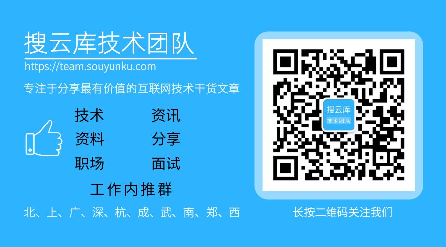 敬请关注,微信公众号「搜云库技术团队」获取最新文章