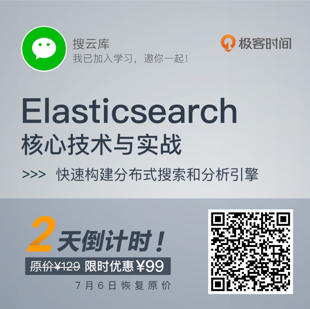 上周推荐的《Elasticsearch 核心技术与实战【1000分钟视频】》,口碑很不错,上线 1 周,就近 9000 订阅了。原价 ¥129,通过我的海报买,再返 ¥24,到手价 ¥75, 【明晚 24 点恢复原价 ¥129】,需要的朋友别错过。