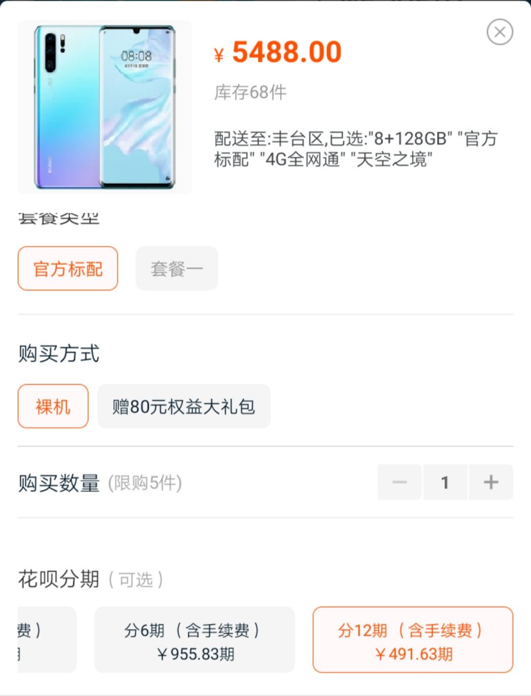 举一个例子吧。比如我要在淘宝购买华为p30,价格5488,现在我要使用花呗分期,分12期还款,那么人家平台已经帮你算好价格了。