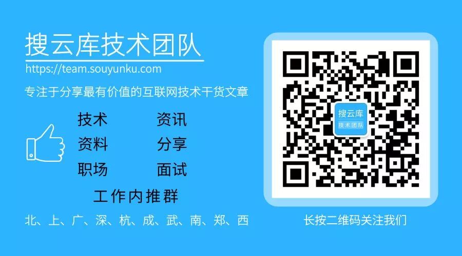 敬请关注「搜云库技术团队」微信公众号,获取最新文章