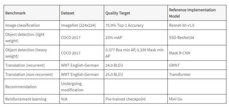 2019 年 7 月 10 日,MLPerf 第二回合的竞赛结果公布,其测试标准如下: