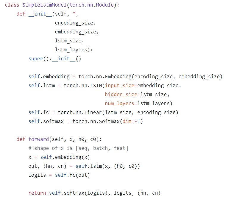 整个模型的主体都是 LSTM,它在 TensorFlow 模型代码库训练后能捕捉非常丰富的 TensorFlow API。如下所示为自动补全模型的主体代码,基本上简单的一个 LSTM 就能搞定: