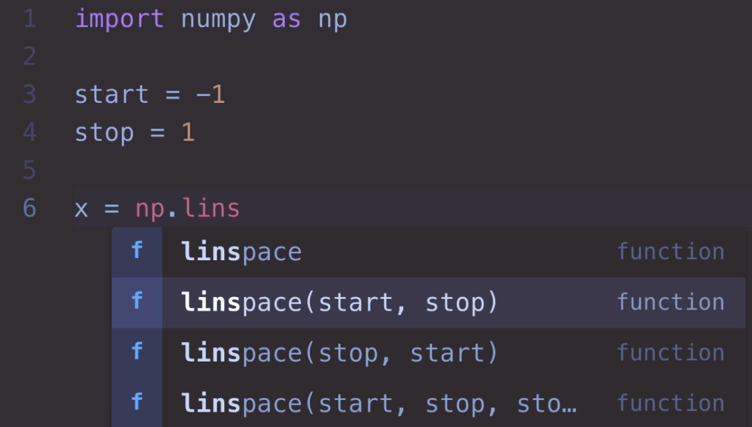 当出现已定义的类、函数、模块和变量时,基本补全就会启动。