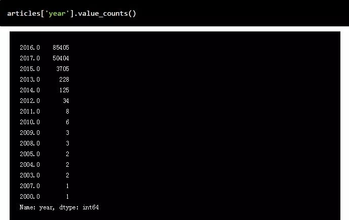 我们使用pandas的value_counts()函数来快速查看下我们的文章是什么时候的。