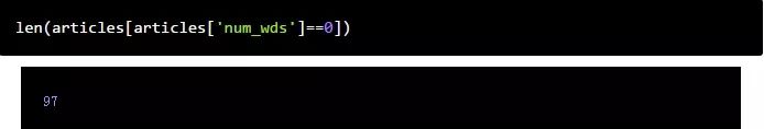 一篇没有单词的文章对我们没有任何用处,所以让我们看看有多少这样的文章。我们希望从数据集中删除没有单词的文章。