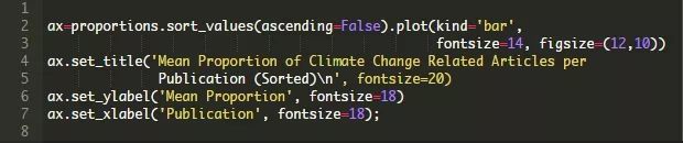 具体来说,在这篇文章中,我们将尝试回答哪家新闻媒体对气候变化报道的最多。同时,我们将学习使用Python分析文本数据的一些技巧,并测试与该数据相关的一个假设。