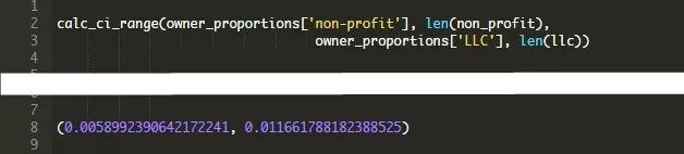 这里,置信区间是0.3%到0.7%,比之前的差异更接近于0,但仍然不包括0。我们可以预计从非盈利媒体到有限责任公司的区间也不包括零: