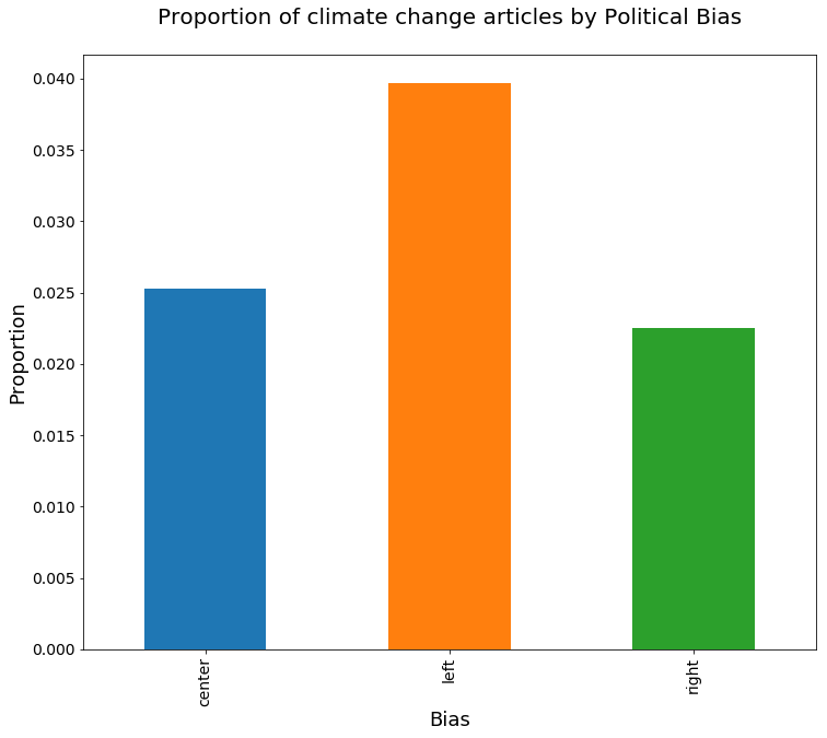 在这篇文章中,我们对一个大型的新闻文章语料库进行了一些文本分析,并检验了关于它们内容差异的一些假设。具体来说,使用一个95%的置信区间,我们估计了不同新闻来源之间关于气候变化讨论的差异。