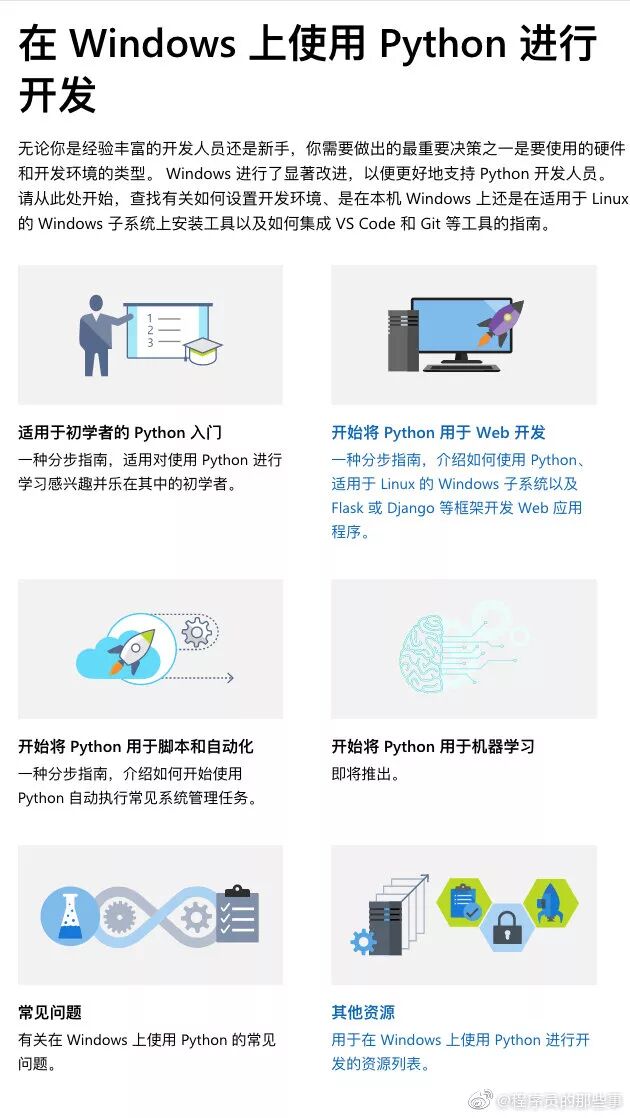 最近,微软官网上了一套 Python 教程《在 Windows 上用 Python 做开发》。有中文版,部分内容出自机器翻译。