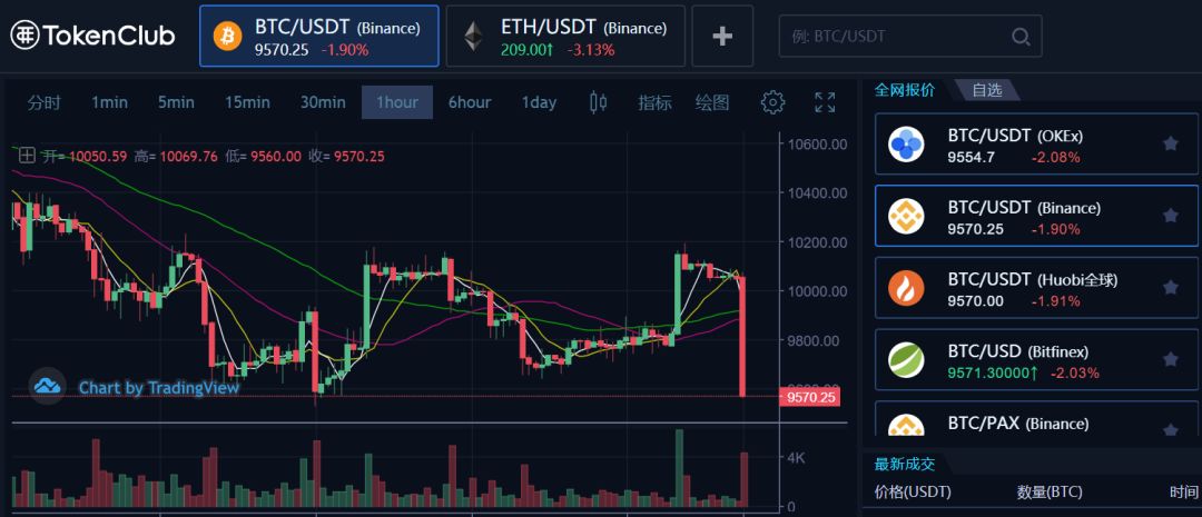 回到行情,刚要写瞬间一根阴线砸下来,综合性观察近几日走势,充斥着正反画门的手法。相比较而言,此次阴线的长度与量能都要远高于前几次(截图发生在六点半,因此可以判断整点走完后交易量会大于之前),预计不会重复之前的区间震荡走势。最近采用高抛低吸策略的朋友可适当扩大一下区间,短线操作建议可在9000-9200挂单搏反弹,破位的话则可以在下方支撑适当建仓。第二种情形操作策略,当前在9500上方暂时止跌,小时线级别站稳则可在当前位置搏反弹,大家随机应变就好。