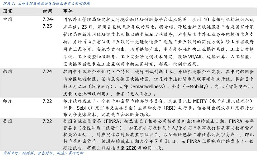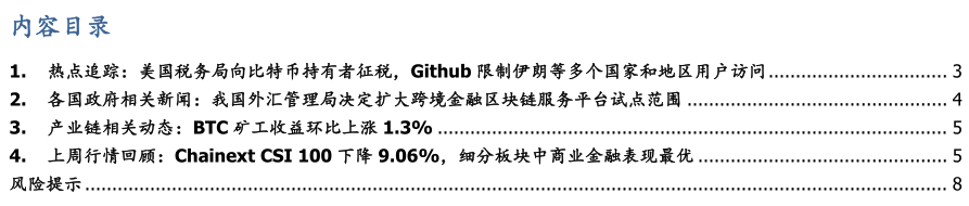 本周,市场震荡回调。美国税务局发布R-2019-132号税务声明,将向比特币持有者征(补)收税款。目前,比特币和其他加密货币被定义为“虚拟货币”,并将其归类为美国联邦税收的资产或财产。加密货币必须要像其他财产交易一样,按照正规法律程序纳税。近日,德国金融监管机构BaFIN批准区块链创业公司Fundament发行2.5亿欧元(合2.8亿美元)基于房地产的代币化债券。美国证券交易委员会(SEC)批准允许区块链游戏公司Pocketful of Quarters(PoQ)在以太坊区块链上发行游戏代币,并可以出售该代币,资产上链加速。基于美国的贸易政策影响,GitHub限制克里米亚、古巴、朝鲜、伊朗和叙利亚等多个国家和地区账户访问。