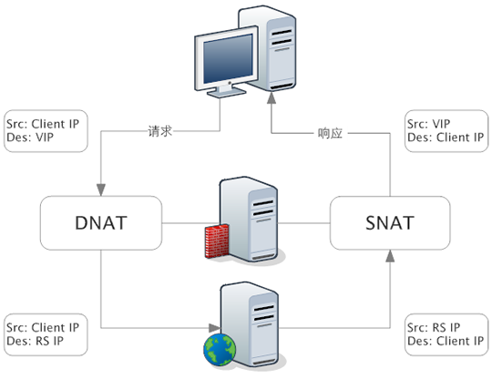 这时 RS 的包通过网关(LVS)中转,LVS 会做源地址转换(SNAT),将包的源地址改为 VIP,这样,这个包对客户端看起来就仿佛是 LVS 直接返回给它的。