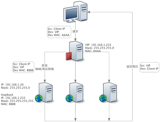 RS 接收到包以后,仿佛是客户端直接发给它的一样。RS 处理完,返回响应时,源 IP 是 RS IP,目标 IP 是客户端的 IP。
