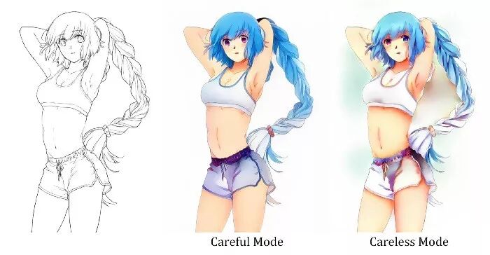 他们称这个项目与之前的端到端图像转换方法不同,因为它是第一个用真实的人类作业流程为线稿上色的系统。很多艺术家熟悉这个流程。