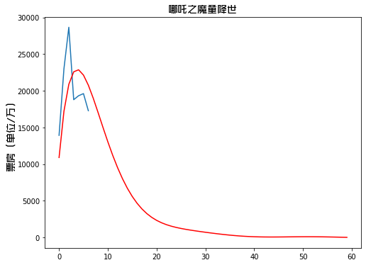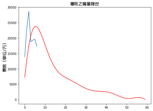 这里用 scipy 库的最小二乘函数 leastsq,将其他电影拟合出的曲线作为基础(而非通用的多项式),对《哪吒》的已有数据进行拟合。