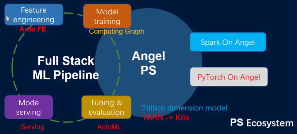 PyTorch On Angel是Angel 3.0新增的特性,它主要是为了解决大规模图表示学习和深度学习模型训练问题。