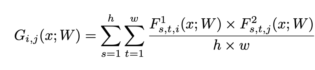 相比传统的蒸馏方法直接用小模型去拟合大模型产生的soft target,论文「A Gift from Knowledge Distillation: FastOptimization, Network Minimization and Transfer Learning」尝试用小模型去拟合大模型不同层特征之间的转换关系(flow of the solution procedure),用一个 FSP 矩阵(特征的内积)来表示不同层特征之间的关系,计算公式如下: