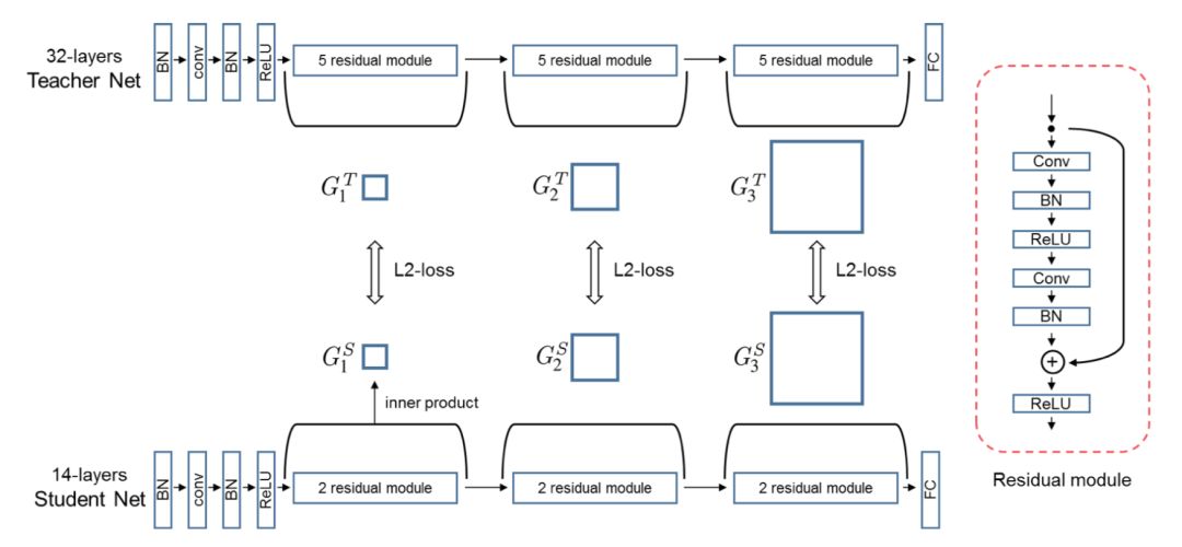 通俗一点的解释是,蒸馏的过程其实就是teacher(大模型)教 student(小模型)解决问题的过程。在教学的过程中,传统蒸馏方法是teacher直接告诉student这道问题的答案,让小模型记住;而FSP蒸馏方法则是让student学习teacher在解决问题时的中间过程和方法。