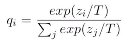 另外,为了使 softtarget 中各个类别的概率值更加平滑,文章中还引入了一个温度系数 T 的概念,对大模型输出的概率值做一个平滑处理,具体公式如下: