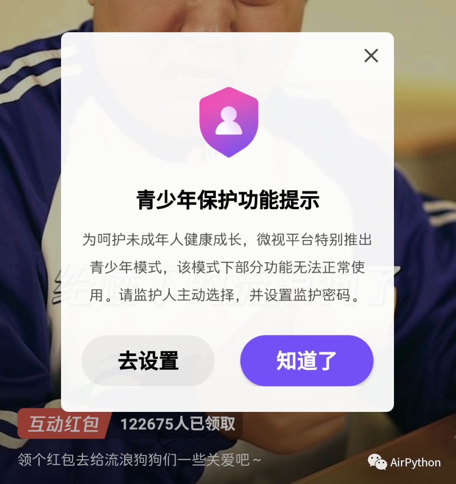 while count tip_notice = self.poco('com.tencent.weishi:id/title_text', text=u'青少年保护功能提示')