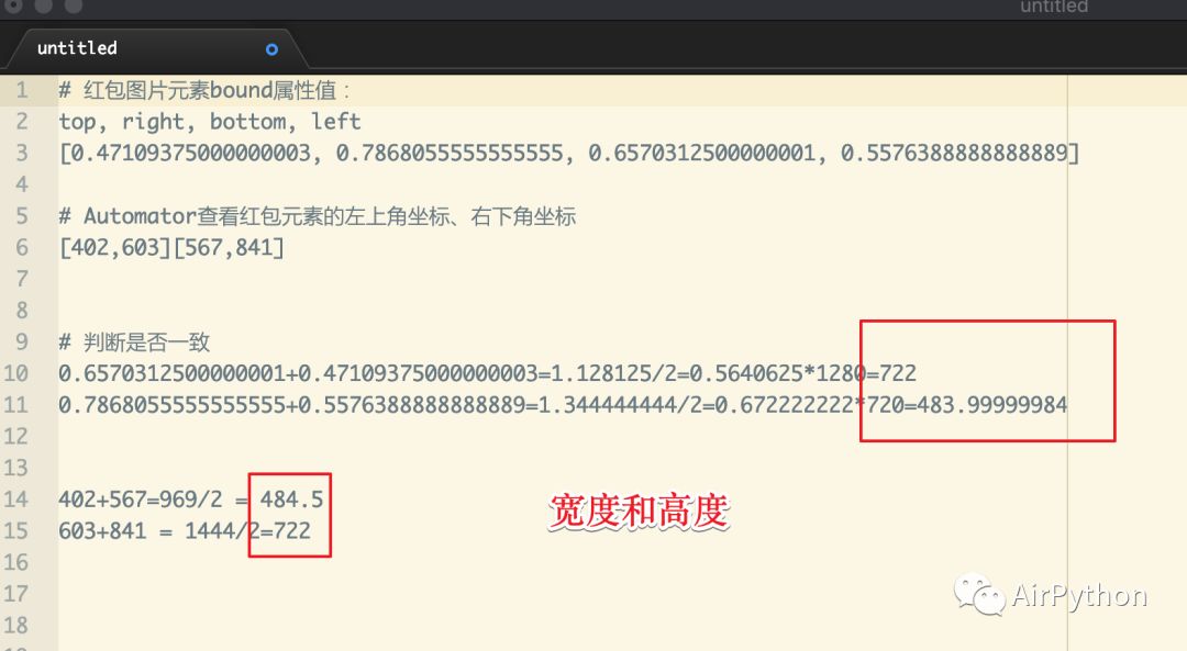 拿到红包图片元素的 bound 属性之后,就可以计算出红包图片元素的中心点坐标。