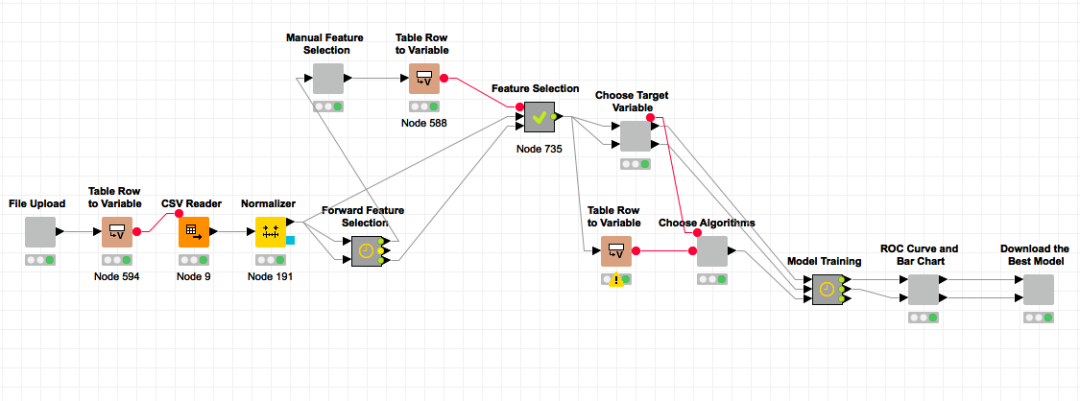 2. KNIME:KNIME允许您使用拖放界面创建整个数据科学工作流程。这种可视化实现整个模型工作流的方法非常直观,在处理复杂的问题陈述时非常有用。
