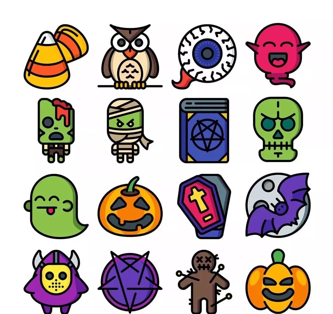 另外还有一组万圣节主题 icon,包括各种南瓜灯、小鬼头、蝙蝠、猫头鹰: