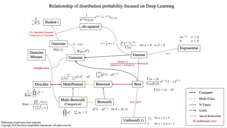 代码:https://github.com/graykode/distribution-is-all-you-need/blob/master/multinomial.py 多项式分布与分类分布的关系与伯努尔分布与二项分布的关系相同。代码:https://github.com/graykode/distribution-is-all-you-need/blob/master/beta.py - 利用共轭,利用已知的先验分布可以更容易地得到后验分布。