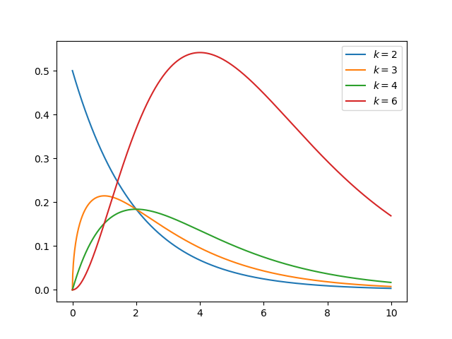 https://github.com/graykode/distribution-is-all-you-need/blob/master/chi-squared.py - k 自由度的卡方分布是 k 个独立标准正态随机变量的平方和的分布。