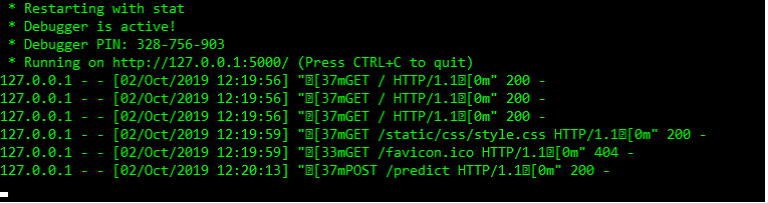 在web浏览器中打开http://127.0.1:5000/,将显示如下所示的GUI.How to Easily Deploy Machine Learning Models Using Flaskhttps://www.kdnuggets.com/2019/10/easily-deploy-machine-learning-models-using-flask.html