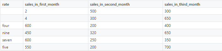 我为这个项目创建了一个定制的销售数据集,它有四列——利率、第一个月的销售额、第二个月的销售额和第三个月的销售额。