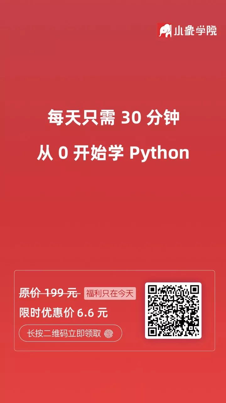 长按识别上方二维码,购买课程小编为大家争取到了100个限时优惠名额。想参加的小伙伴要立刻抢购喔,先报先占位 !小象学院在人工智能教育领域是出了名的专业、负责,具备非常靠谱的讲师团队和稳定的内容输出, 被AI教父李开复誉为IT届的黄埔军校,并且引领创新工场做战略投资。现已有100W+学员在小象学院学习人工智能和大数据的在线课程这次特别申请到6.6元底价体验课,带你体验前七关,完成14个案例实操,入门Python人工智能👇👇👇