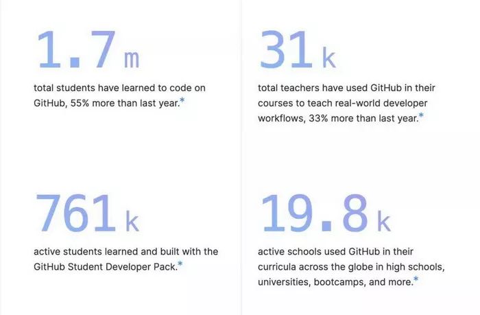 学校中的学生正在成长为下一代开发者,今年超过 76 万开发者在 Github 上学习,Github 上共有 170 万学生在上面学习编程,比去年多了 55%。
