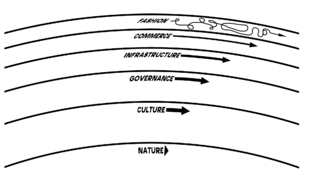 步调分层在整个系统中提供了多级的校正,稳定反馈。正是在这些层次之间的矛盾中,文明才找到最可靠的健康。我建议在一个健壮且适应性强的文明中,六个重要的步调和规模。
