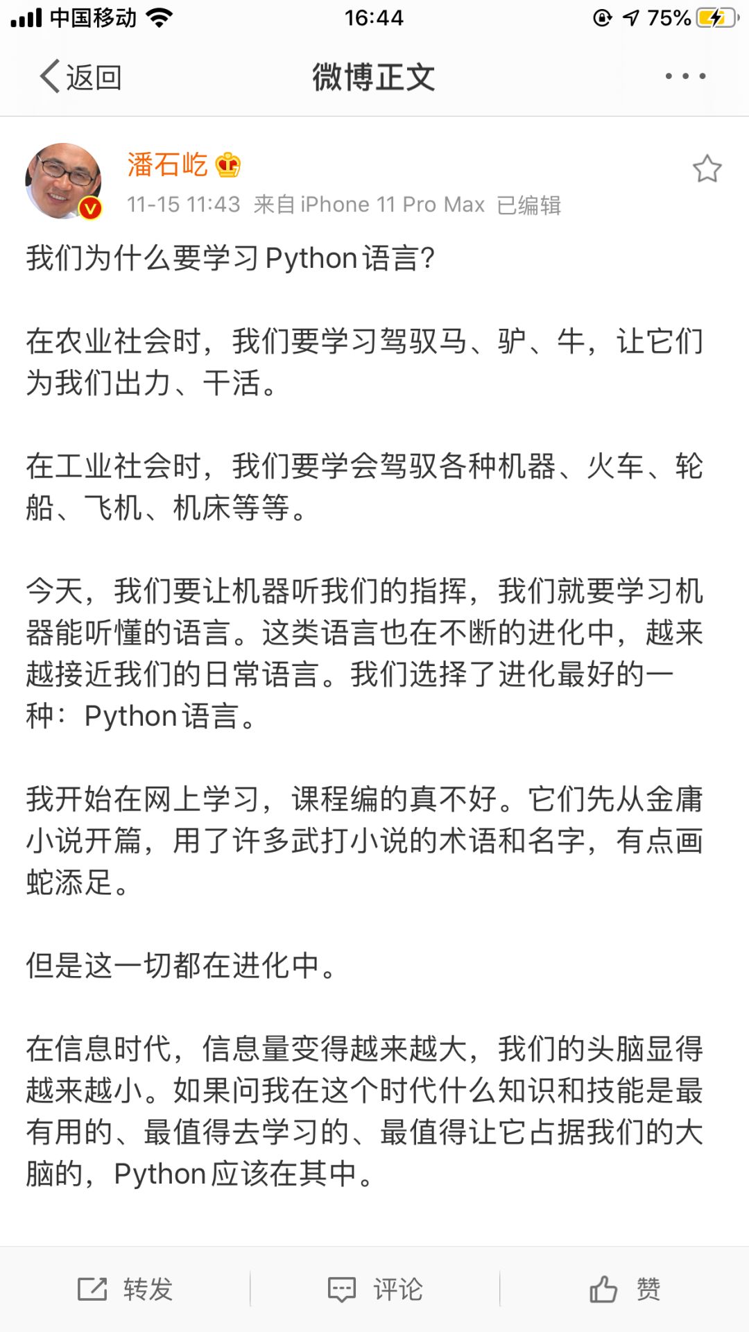 潘石屹回复:为什么学习Python语言?