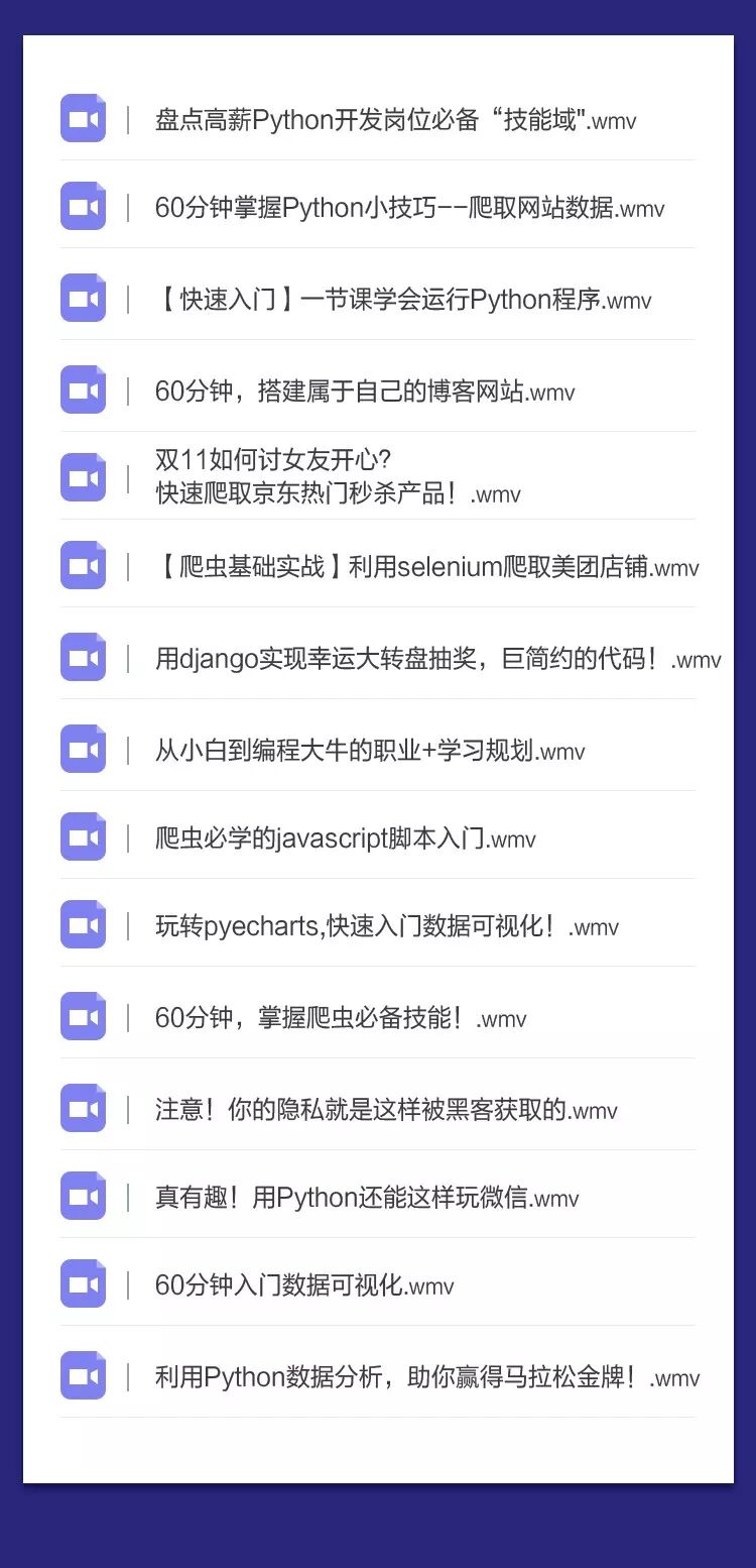 作为一名 Python 开发人员,在学好了基本语法之后,还需要学习 Python 的逻辑运算,数据类型,协程线程,高级特性,错误处理等等基础知识,形成一个系统性的概念整体。02.