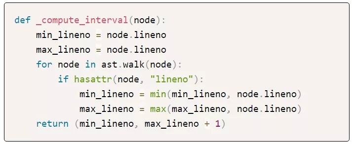 对于任意AST节点,该函数会返回一个此节点的第一个和最后一个行号的元组。
