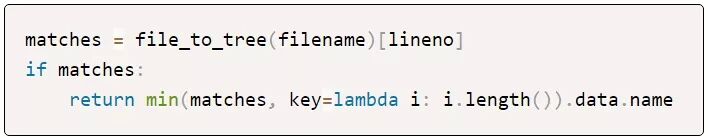 如果有多个区间包含我们的行号,则该构建树可能会返回几个匹配项。在这种情况下,我们选择最小的区间并返回此节点的名称——也就是我们的类名或函数名!