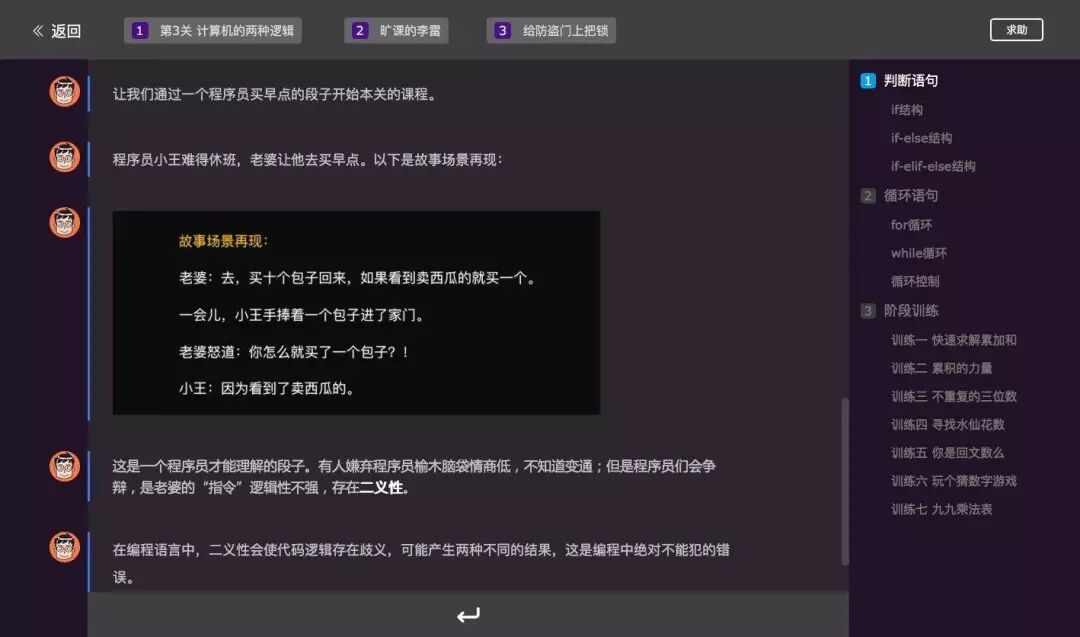 聊天式交互教学,好像在跟渊博又有趣的人聊天,听他引经据典娓娓道来,还有各种故事情节,学编程也可以像追剧一样上瘾,根本停不下来 有木有~\(≧▽≦)/