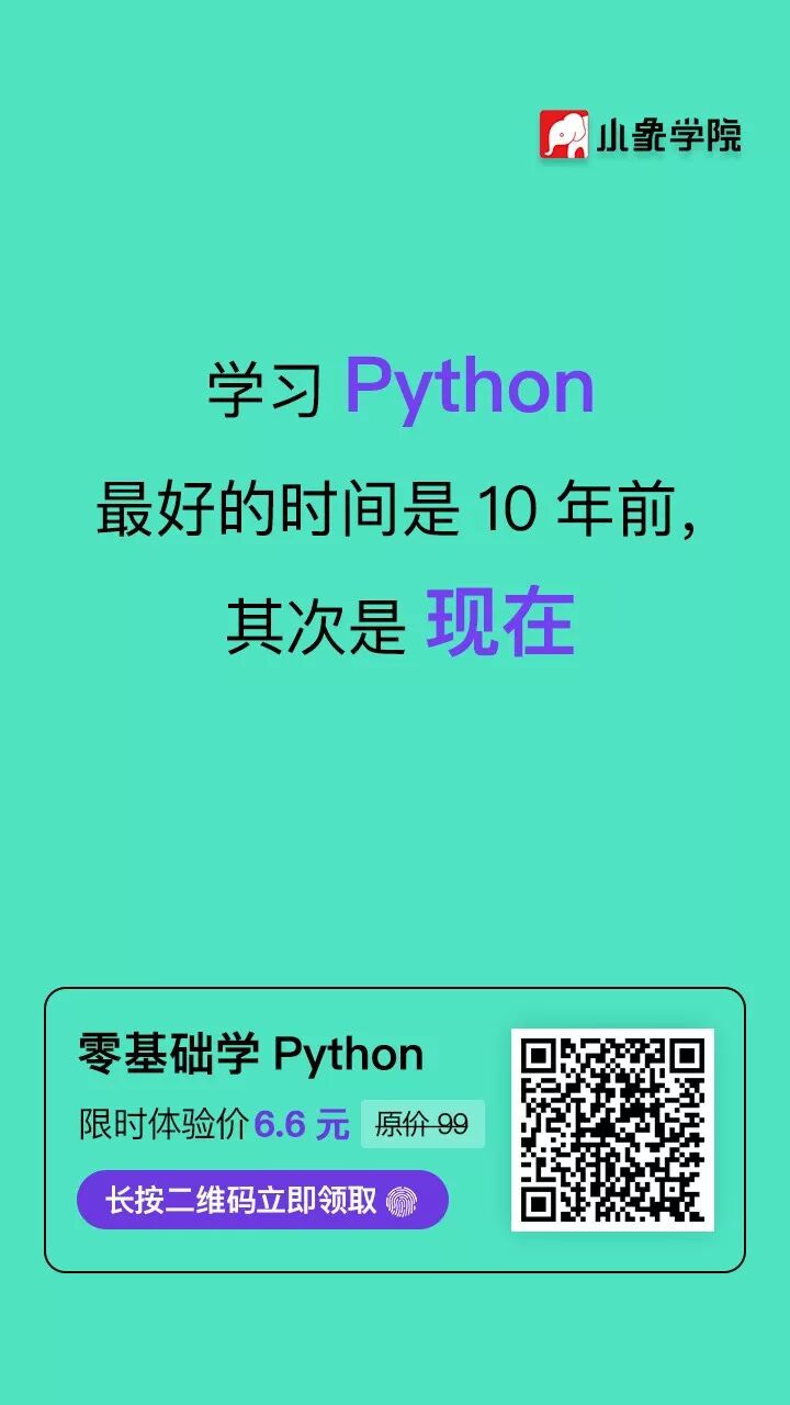 我之前刚学编程时,看过视频,也买过书,但是最后都半途而废了。小象的这个编程课,却让我打开眼界,说它是对初学者最为友好的编程课也毫不为过!即使没有任何编程基础,只需几天时间即可入门,毕竟连小学生都在学。这也是为什么,我要把小象学院的Python课推荐给大家的原因之一。我和小象学院再次合作,也给大家争取到底价的 7 天体验零基础学 Python。零基础入门 Python 人工智能