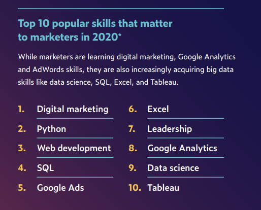 报告显示,市场工作者将 Python 技能排在了非常显眼的位置,仅次于传统的数字营销技能。