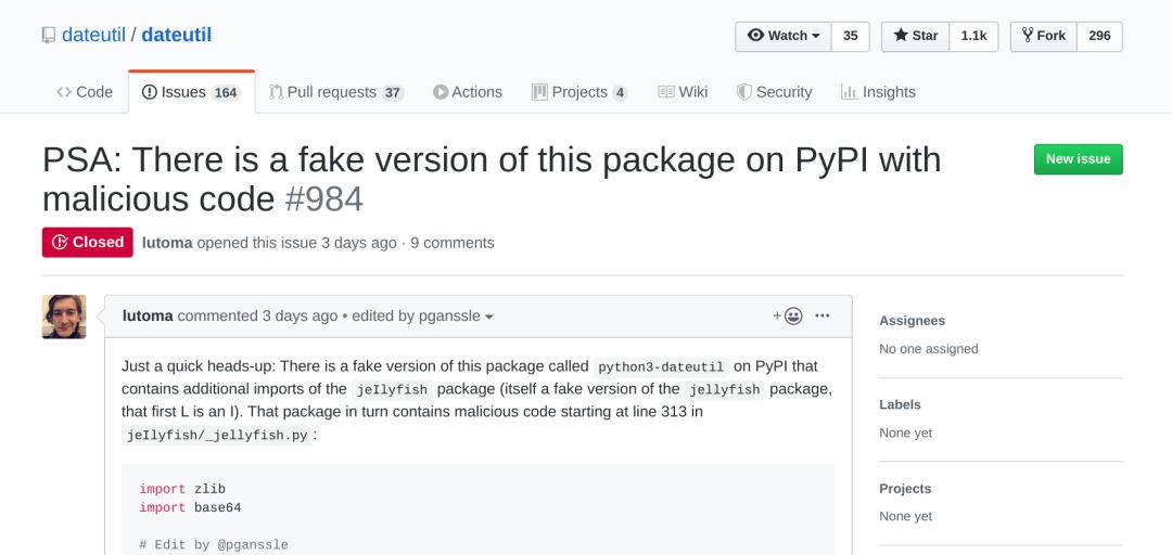 提醒使用“dateutil”和“jellyfish”的开发者,都检查一下是否导入或下载了不正确的软件包。